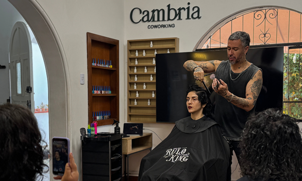Cambria fue escenario de un evento único: Masterclass full day liderado por el reconocido estilista argentino Rulo King, especialista en rizos y ondas. Desde muy temprano, Cambria activó todo su potencial como espacio colaborativo, brindando infraestructura equipada y adaptada para sesiones prácticas, demostraciones en vivo y momentos íntimos de aprendizaje. Entre espejos, estaciones de trabajo y salas cómodas, el conocimiento fluyó sin barreras. Esta jornada reafirma el valor de nuestro modelo de coworking: un lugar donde artistas independientes crecen, se conectan y se forman juntos.